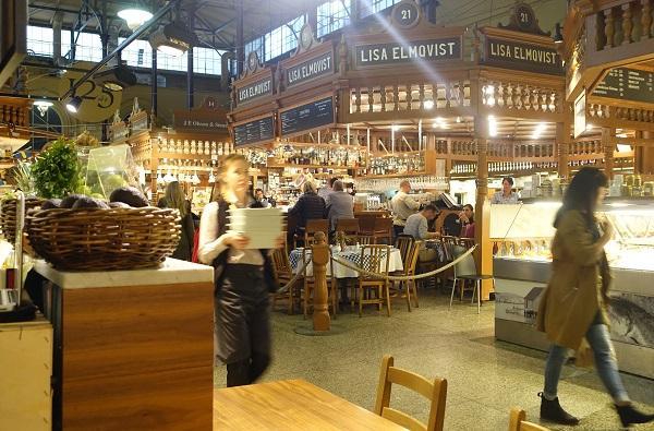Si toutefois vous ne souhaitez pas faire la cuisine, presque tous les marchands proposent des plats à emporter ainsi qu'un petit coin bar ou restaurant pour déguster sur place leurs spécialités suédoises, comme le biff à la Lindström, la västerbottenpaj, les kötbullar, le pyttipanna ou les smörgåsar. Il y a aussi d'excellents desserts , comme la généreuse tarte caramel-noix chez L.Elmqvist ou le classique Princesstårta chez Vette-Katten. Pour le goûter, ce même point de vente propose des chokladbollar ou des arraksbollar et un café à emporter. S'il pleut, vous pourrez vous asseoir chez Roberts siroter un thé «Miss Saigon», accompagné d'une part de Morotstårta.