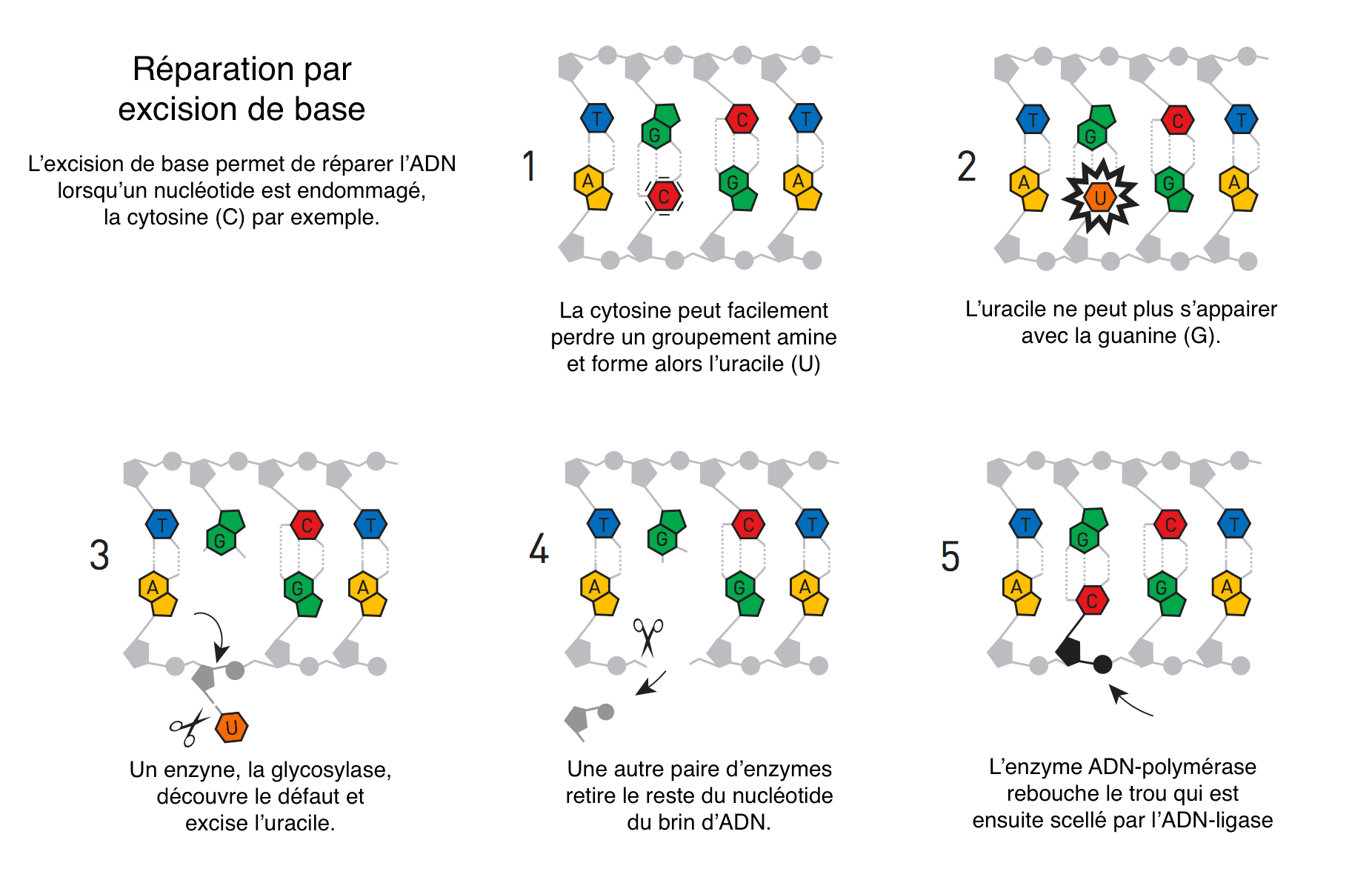 Dès les années 1960, Tomas Lindahl s'est posé la question de la stabilité de cette molécule. En effet, l'ADN reste incroyablement intact malgré les milliards de milliards de divisions cellulaires qui se produisent en permanence dans l'organisme. Cela est dû à une multitude de protéines qui s'assure qu'aucune mutation n'apparaît et qui la répare le cas échéant. Mais quels sont les processus de réparation de l'ADN ?