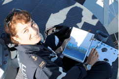 L'intérêt du statut de POM, qui nous confère un grade honorifique et un uniforme, est de pouvoir embarquer sur des navires de la Marine nationale et de participer pleinement à la vie de l'équipage. J'ai pu ainsi naviguer sur des bâtiments de types très différents, allant du patrouilleur au bâtiment de projection et de commandement. Mon expérience la plus extraordinaire fut sans doute de pouvoir embarquer quatre jours dans un sous-marin nucléaire lanceur d'engin, le Triomphant. J'ai été ainsi la première femme Peintre officiel de la Marine à vivre cette expérience. J'ai eu d'ailleurs la joie de revoir à Sydney le commandant qui m'avait accueillie sur le Triomphant à l'époque, Marc Delorme, qui travaille aujourd'hui dans l'industrie de Défense. Cette mission dans le Pacifique sera également l'un de mes plus beaux souvenirs de POM !