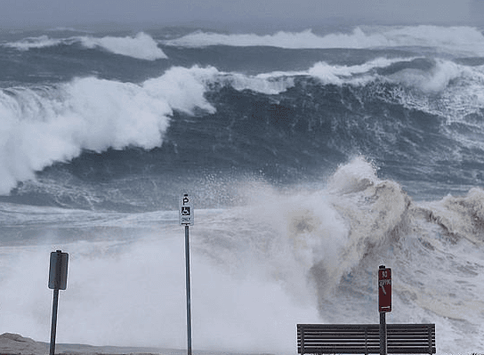 A Bondi Beach, le skate park a été complètement recouvert d'eau avec des vagues de 11 mètres recouvrant la plage.