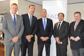 Photo Lepetitjournal.com. De gauche à droite: Jens Goennemann (Australian Aerospace), Ron Koehler (Gac Schenker), Tom Enders (EADS), Francois Romanet (SAFRAN/FACCI), Fabrice Rochereau (EADS Australia)