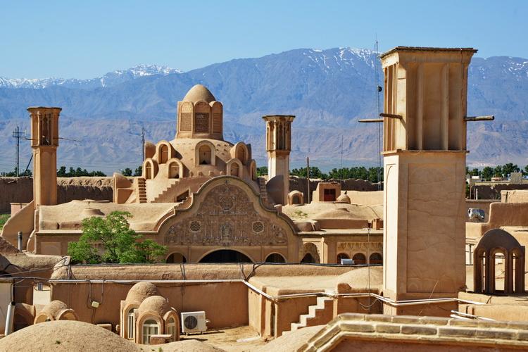Aujourd'hui connue pour son eau de rose, autrefois pour ses céramiques, la cité de Kashan fut fondée au plus tôt sous la dynastie sassanide (IIIe-VIIe s.), mais le site de Tapeh Sialk, en bordure de la ville, montre que la région fut déjà habitée il y a quelque 7000 ans. Renommée sous les Seldjoukides (XIe-XIIe siècle) pour ses intellectuels, ses administrateurs et ses calligraphes, Kashan fut relativement peu affectée par les dévastations des Mongols, des Timourides et des Turkmènes. Avec les Safavides (XVIe-XVIIe siècle), elle brille de tous ses feux, et Shah Abbas Ier enrichit la ville de palais, de jardins et de bazars. Au XVIIIe siècle, l'invasion afghane puis Nader Shah commettent déprédations et tueries, et un tremblement de terre dévaste la ville en 1779. Elle est reconstruite et restaurée par Karim Khan Zand et par le Qadjar Fath Ali Shah (XIXe s.). Les monuments de Kashan ne sont donc, pour la plupart, pas très anciens (XIXe siècle pour l'essentiel), mais ils comptent parmi les plus beaux exemples de l'architecture qadjare du pays.
