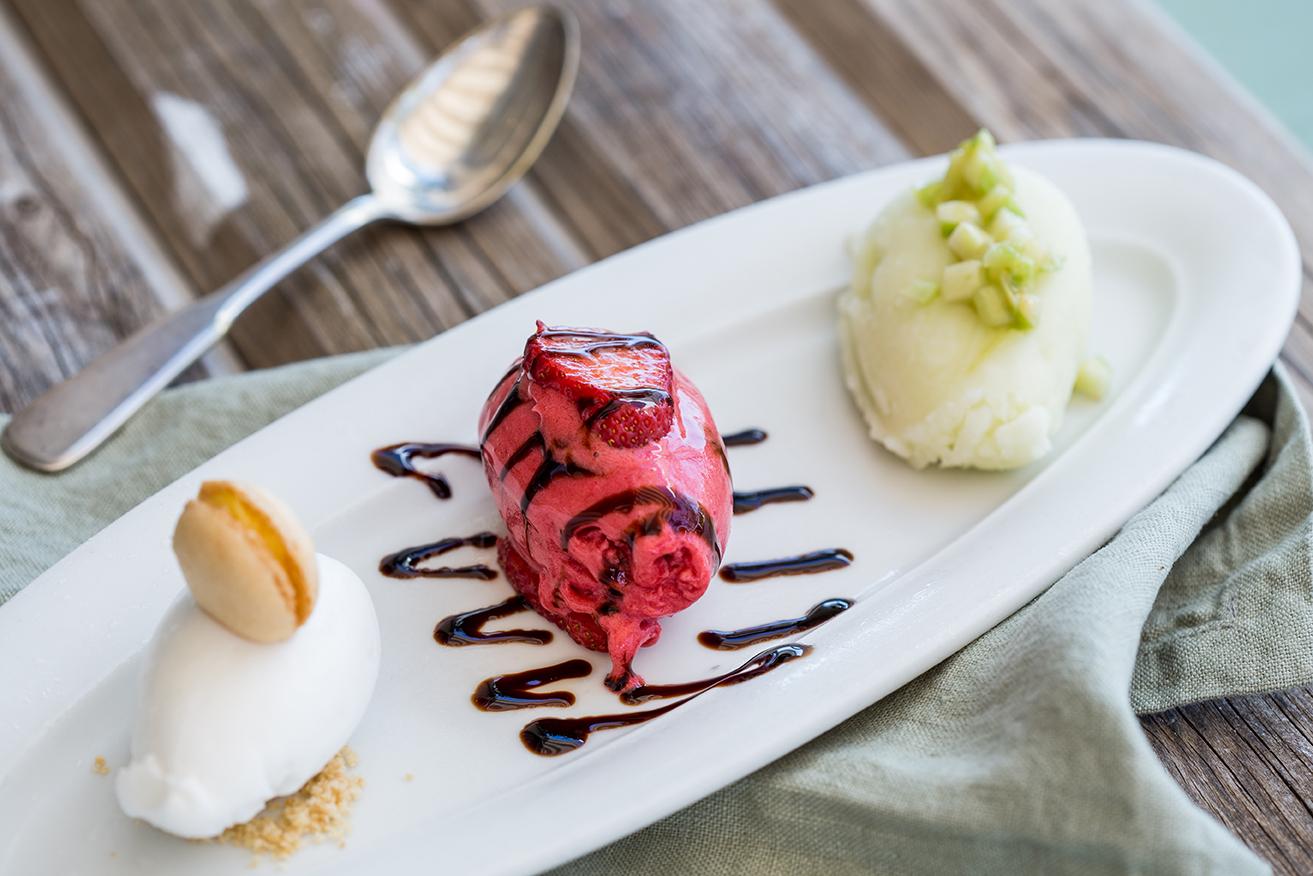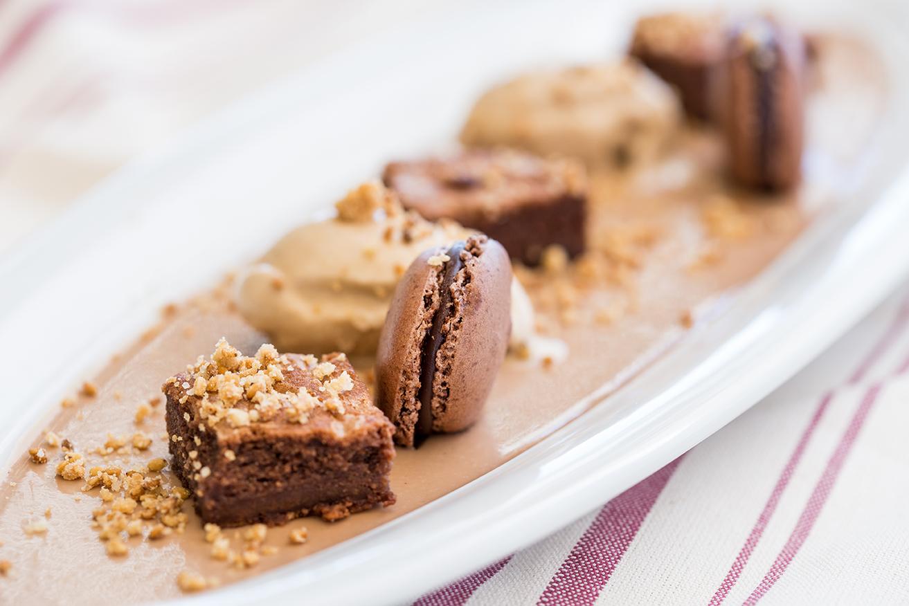 En dessert, on succombe aux charmes de la crème chocolat au lait-espresso, quelques morceaux de brownies, mini-macarons chocolat, crumble de sésame et sa boule de glace au café (44 shekels) ou au trio de sorbets et glaces maison (38 shekels) délicates et parfumées (mention particulière pour les sorbets pomme verte et noix de coco).