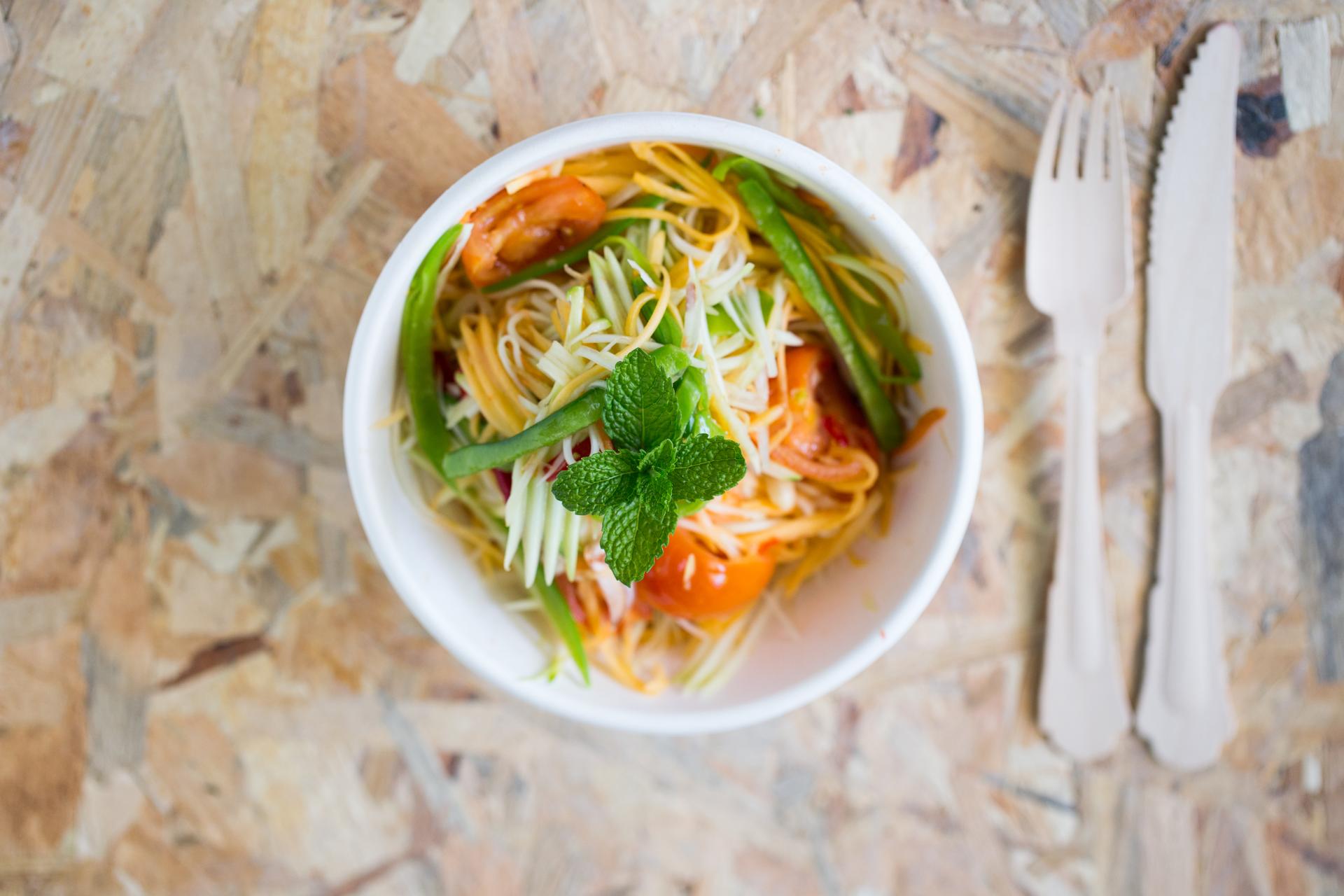 Le concept est simple, on passe de comptoir en comptoir et on choisit une spécialité créée exclusivement par des chefs originaires du pays. Le ramen burger nippon de chez Yatai est aussi original que savoureux puisque les nouilles viennent ici remplacer le pain brioché, la salade de papaye thaï est aussi relevée qu'au pays, le gyros pita à la viande fondante fidèle à la tradition grecque, et la pasta paella aux fruits de mer une alternative gouteuse à la version à base de riz.