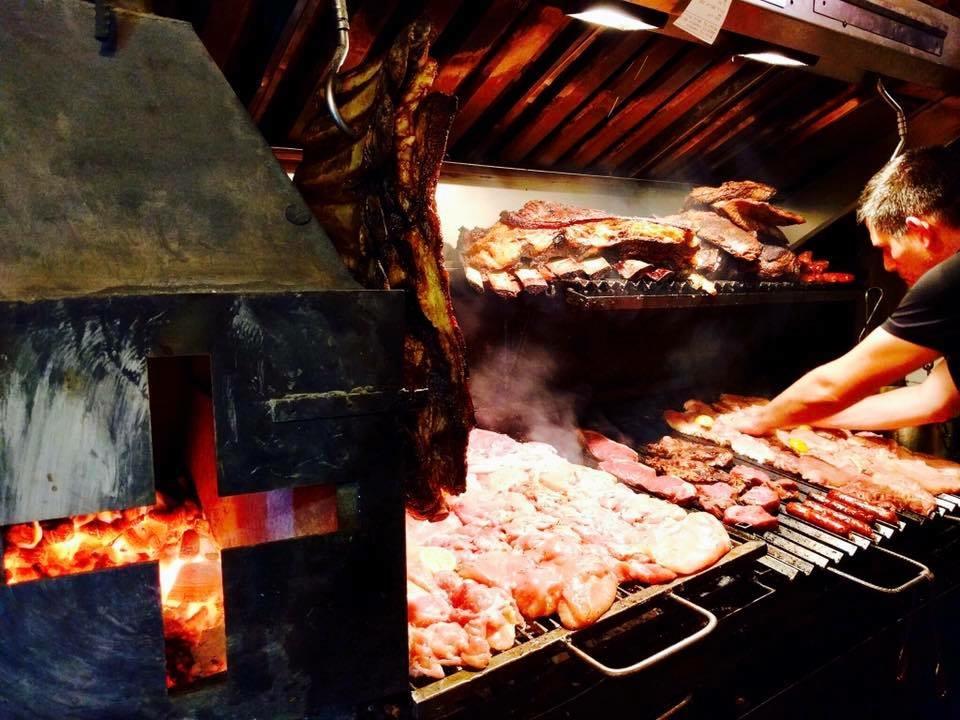 Tables de bois, sol en béton, tableau représentant les différentes parties de la vache, tissus et spécialités argentines dans l'étagère, musique locale, grill et casseroles en ébullition, on se sent en un clin d'œil en immersion totale.