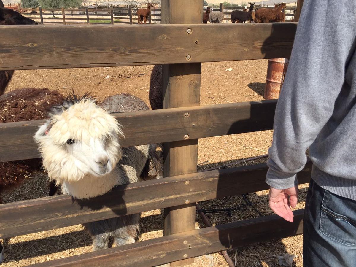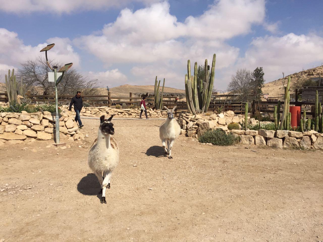 On quitte Tel-Aviv le matin et on fait une première halte près de Mitzpe Ramon dans une fabuleuse ferme qui accueille pas moins de 160 alpagas, 30 lamas, 36 chevaux et 13 chiens ! A l'origine de ce projet fou, un couple, Ilan et Naama qui, après l'armée ont décidé de réaliser leur rêve, suite à un long voyage en Amérique Latine et un séjour décisif au Pérou. Le résultat : ils ouvrent en 1987 cette Alpaca Farm qui, depuis, accueille la centaine de bêtes venues dans un avion reconverti en champ, le temps du voyage ! Un pari totalement fou mais viable puisqu'ils sont ici, dans le désert du Negev, parvenus à reconstituer l'environnement et un climat similaire à celui de la cordillère des Andes. La ferme produit plusieurs kilos de cette laine luxueuse - l'alpaga se classe au 3ème rang en terme de qualité après l'angora et le pashmina, et chaque bête fournit environ 3-4 kilos de laine tous les deux ans - qu'elle utilise pour confectionner des accessoires. Elle vit surtout du tourisme avec la location de ses cabines où l'on peut dormir (650-750 shekels selon le jour de la semaine pour un couple avec petit-déjeuner), de ses promenades à cheval (« desert trail » d'une journée ou plusieurs jours, à partir de 175 shekels par personne) et du mémorable « lama picnic » (200 et 300 shekels le week-end jusqu'à 5 personnes) qui ravira les enfants à coup sûr.