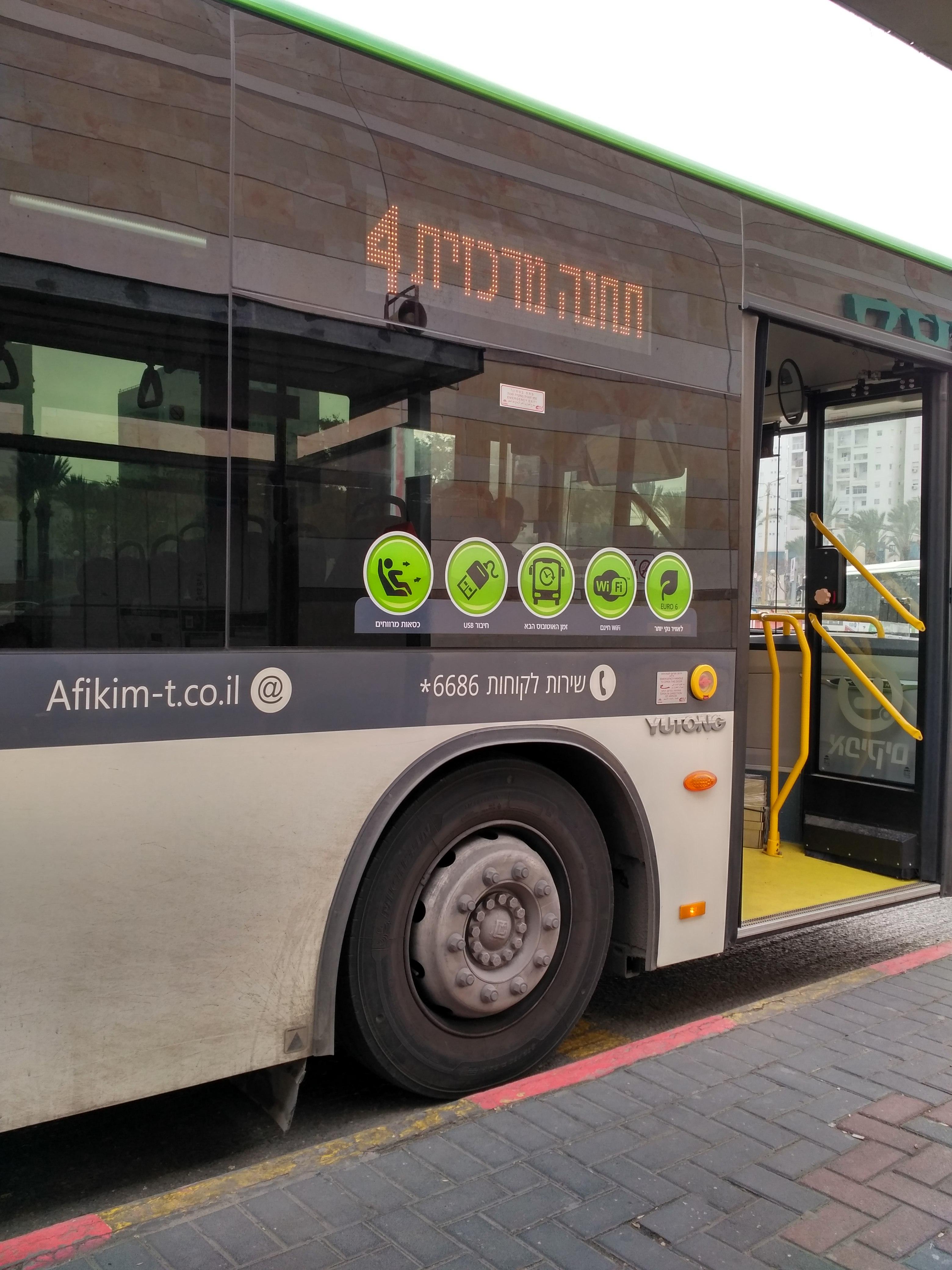 - Les bus de la récente compagnie Afikim offrent une connexion wifi et des ports USB intégrés à leurs murs afin que les voyageurs rechargent leurs smartphones le temps du voyage !