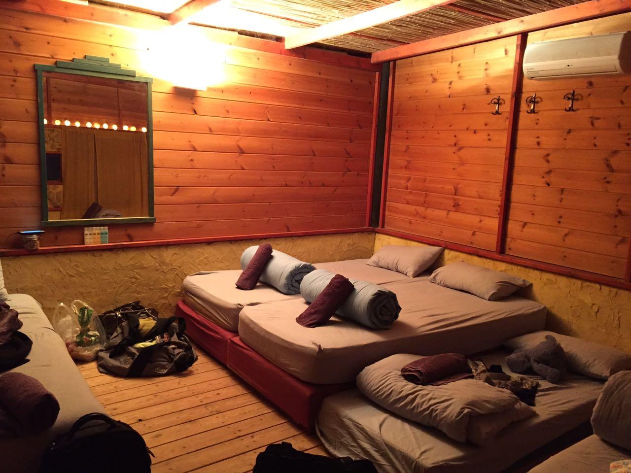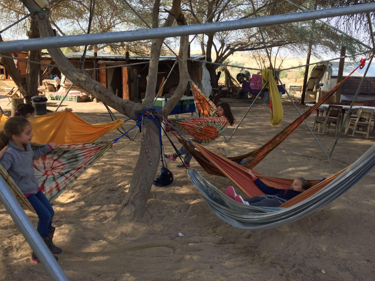 La magie du lieu opère tout particulièrement la nuit tombante. On franchit le portail et l'on savoure l'effet de dépaysement immédiat. Feu de camp, lampions multicolores, musique chaleureuse et rythmée, et vaste cuisine communale dans laquelle s'activent les visiteurs de passage, le lieu est convivial et accueillant, à l'image de son hôte Gil. On y vient en famille ou entre amis, et l'on choisit une cabine pour 2 ou 4 personnes (Nis350- 450 la nuit), lodge/tente pour 15 (Nis1500/Nis1300) ou même un dortoir pour 20 (Nis2000) afin de vivre ensemble un doux moment de partage. On peut également louer le honeymoon bus pour une expérience encore plus exotique (Nis450).