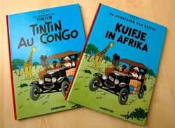 La couverture de Tintin au Congo en français et en néerlandais (AFP)