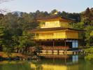 | Kinkaku-ji Le pavillon d'or, temple le plus visité de Kyoto, a été fondé 1397 au pied du mont Kinugasa, brûla en 1950 et fut reconstruit. Recouvert de feuilles d'or, il se dresse majestueusement au milieu d'un cadre idyllique de jardins et d'étangs. |