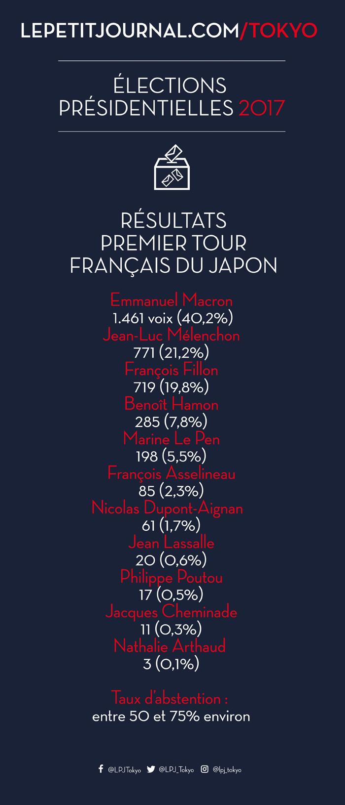 Avant-hier, dimanche, près de 3 600 Français établis au Japon se sont rendus aux urnes pour voter au premier tour des élections présidentielles 2017. En attendant la communication officielle par l'Ambassade de France au Japon, lepetitjournal.com Tokyo vous propose de découvrir les résultats de ce rendez-vous politique.