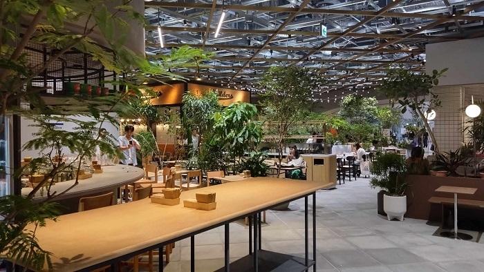 Shopping, dégustations, événements réguliers… ce “marché” inondé de verdure est le lieu idéal pour une pause où peuvent se croiser travailleurs et visiteurs à la recherche d’un moment de détente.