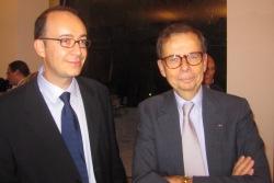 Matthieu Seguela, à gauche, a été récompensé fin septembre du prix Shibusawa-Claudel 2012 lors d'une cérémonie à la Résidence de l'ambassadeur du Japon à Paris, en présence de plusieurs personnalités, dont Louis Schweitzer (Crédit photo Mitsui Mina)