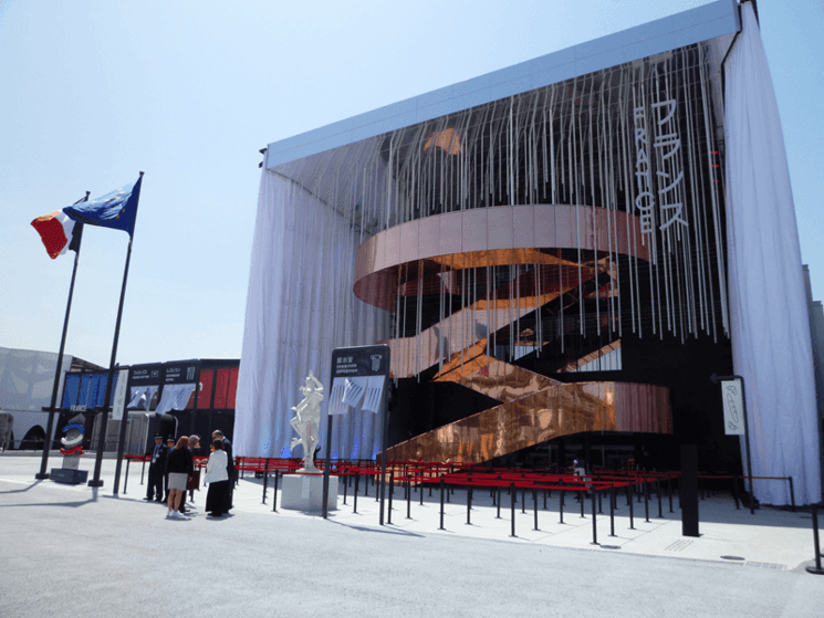 Le 13 avril dernier, sous une pluie battante, les premiers visiteurs de l’Expo universelle d’Osaka s’agglutinent avec patience à l’entrée du pavillon français. On se prend en photo devant la façade de cuivre rosé, on commente les statues blanches et nues, imperturbables face aux rafales. On observe les files s’étirer le long des pavillons voisins, on a hâte de découvrir… quoi, exactement ?