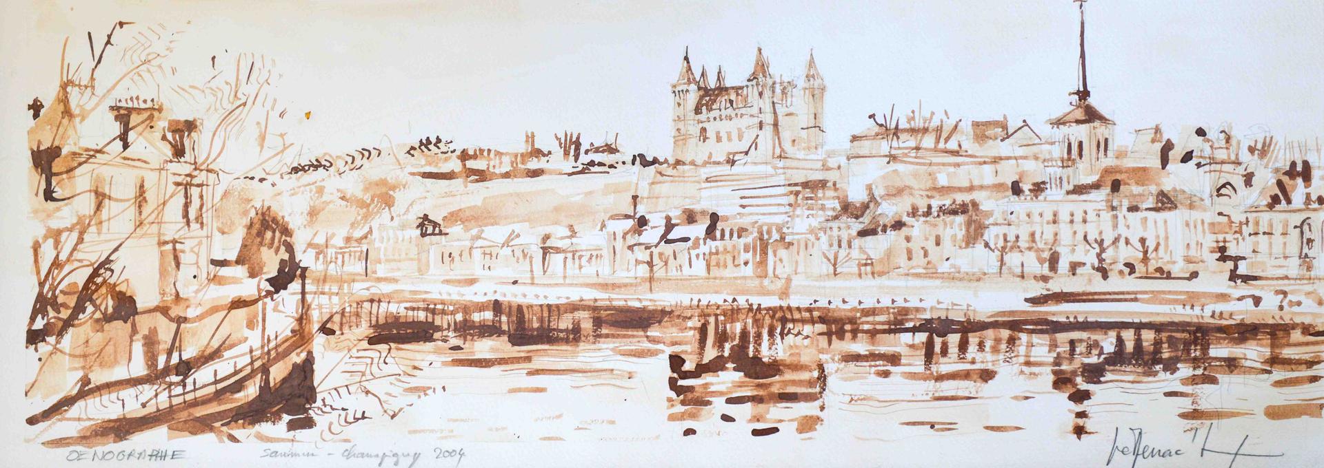 François Le Menac'h, habitant de Saumur est un ?nographe : il peint avec du vin ! À la base, c'est une déconvenue qui a poussé cet artiste qui peignait des aquarelles de façon tout à fait traditionnelle à utiliser le vin de façon artistique.