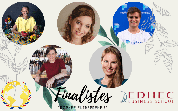 Découvrez les 5 finalistes du Trophée Entrepreneur des Trophées des Français de l'étranger, parrainé par EDHEC Business School. Qui succèdera à Cécile Dahome, Trophée entrepreneur 2021 ?