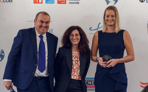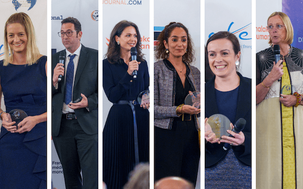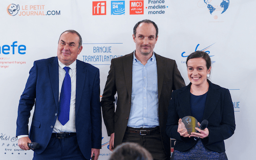 De retour en Asie, Johanna Levy s’avance à son tour sur l’estrade. Son reportage a emu l’assemblée. La co-fondatrice de Hope-Bangkok s’engage pleinement dans la cause des réfugiés en Thaïlande. “C’est aussi l’action de toute une équipe. Nous ne lâchons rien et les projets fusent” dit-elle en montrant le joli sac qu’elle porte à l’épaule et réalisé par l’association pour récolter des fonds. Ancienne élève du Lycée Français de Tokyo, la lauréate reçoit le trophée Alumni des lycées français du monde, remis par Claudia Scherer-Effosse, directrice générale de l’AEFE. Son parcours est un porte-drapeau du réseau de 600.000 anciens élèves issus de l’enseignement français de l’étranger.