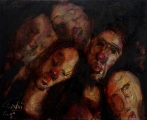 Il a peint la lumière, des puits de lueurs qui sont autant de résistances aux esprits noirs et desseins brumeux ... Visages perçant la pénombre, porteurs d'espoir et de désespoir, témoins lumineux et sentinelles rouges au regard perçant ...