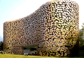En effet, se sont bien plus que des murs que l'artiste s'approprie pour peindre mais un travail bien en amont commençant à partir de la conception du bâtiment. La Calligraphie de Shoof viendra s'incorporer à la structure du bâtiment, offrant comme une seconde peau en métal découpé.