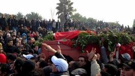 La foule venue rendre hommage à Chokri Belaïd, enterré au cimetière du Jellaz dans le carré des martyrs, ne diminue pas : on parle déjà de funérailles "à la Bourguiba"