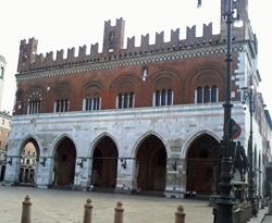 Notre itinéraire part du cœur de la cité médiévale, de la Grand-Place qui porte aujourd'hui le nom de Piazza Cavalli. Sur cette belle place, deux statues équestres en bronze représentent Alexandre Farnèse et Ranuccio Ier Farnèse, magnifiques exemples de sculpture baroque. La place remonte à l'époque d'Alberto Scoto, à la fin du XIIIe siècle. Dans l'esprit de ce dernier, il s'agissait de créer un pôle "laïc". On y trouve de nombreux palais : le Palazzo Comunale ou Palazzo Gotico, dont la partie supérieure en brique aux tons roses repose sur une loggia gothique agrémentée d'une galerie d'arcs brisés, recouverte de marbre de Vérone ; le Palazzo del Governatore et le Palazzo Mercanti qui abrite aujourd'hui la mairie. De la place, en empruntant via XX Settembre, on croise tout d'abord l'église gothique de San Francesco avant d'arriver au centre du pouvoir religieux de la ville médiévale, situé autour du Duomo, en perte de vitesse à partir du moment où le pouvoir civil s'affirme. Sur une vaste place où il est agréable de siroter une boisson, se dresse la cathédrale (ouverte de 7h30 à 12h et de 16h à 19h) construite entre 1122 et 1233.