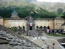 A 87 km de Turin et à 115 km de Milan, situé au nord de la ville de Biella, surnommée la ?Manchester d'Italie? pour sa très haute spécialisation dans le textile et en particulier dans l'industrie de la laine, Oropa (1200 m) est le plus important sanctuaire alpin dédié à la Vierge. C'est également l'un des plus anciens. Selon la légende, son fondateur aurait rapporté d'orient en 363 une statue de la Vierge noire attribuée à l'évangéliste saint Luc (en réalité, elle date du XIIIe s.). (Photo Santuario di Oropa)
