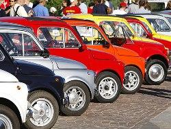 Le 4 juillet 2007, le lancement de la nouvelle Fiat 500 est l'occasion d'admirer les différents modèles de 500 exposés sur la place Vittorio Veneto (photo Fiat, welcome 500)