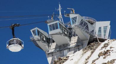 Le nouveau téléphérique du Mont-Blanc sur le versant italien sera inauguré officiellement le 23 juin prochain. En verre et en acier, ses cabines pivotant à 360° offrent aux passagers des émotions inoubliables avant de rejoindre la terrasse panoramique de la Pointe Helbronner à 3.466 m d'altitude.