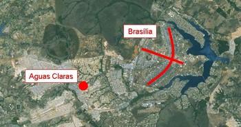 Aguas Claras est une de ces villes satellites. À l'image de la photo de cet article, la construction d'immeubles explose en ce moment dans cette ville. On y construit de grands condominiums avec de nombreux services inclus. Ils disposent tous de parkings gigantesques en façade, anihilant l'animation de la rue. D'ailleurs très peu de petits magasins ont été prévus. On pourrait même se demander : où alors trouver le petit pain du matin ? Des shopping centers aux formes les plus incroyables (Taguatinga shopping en forme de gigantesque arc de triomphe de verre) sortent de terre. Le projet de la vie de voisinnage dans les quadras (ensemble de plusieurs immeubles devant vivre ensemble) a donc cédé la place à la vie refermée en condominiums. Seul mérite qui peut être reconnu à la planification de la ville : l'implantation d'un métro. Il permet de rejoindre le centre de Brasília en 25 minutes. Malheureusement les rames de métro manquent et les fréquences sont faibles. Les habitants d'Aguas Claras continuent donc d'utiliser leurs voitures... La protection ? à outrance ? ? du plan-pilote et le déficit de constructions au centre de la ville de Brasília a donc précipité la fin du magnifique projet urbanistique originel. La capitale réserve tout de même une surprise : l'utilisation du lac comme un véritable espace de loisirs. On peut ainsi apprécier la vue sur le Congrès brésilien depuis un ponton placé sur la rive est du lac, en voilier (très nombreux) ou encore en windsurf (très nombreux aussi).