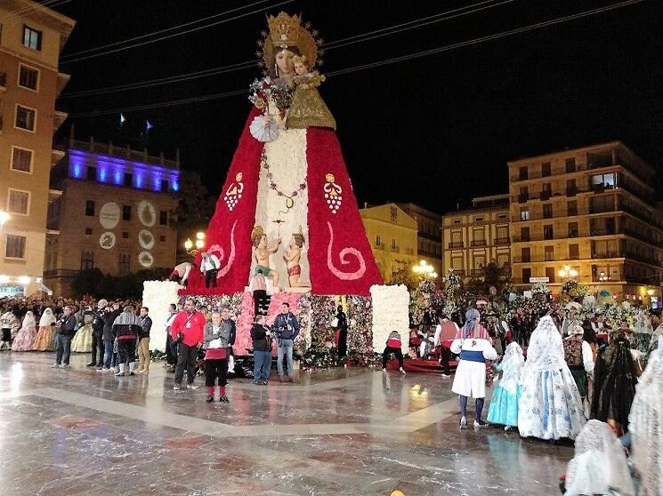 23h : Danses traditionnelles en l'honneur de la Virgen de los Desamparados avec la participation des Falleras Mayores et des autels de San Vicente sur la plaza de la Virgen