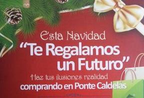 Fin novembre, l'association des Commerçants et Entrepreneurs de Ponte Caldelas (COEMPO), en partenariat avec la mairie de Ponte Caldelas (Pontevedra, Galice) annonce le lancement de sa traditionnelle campagne de Noël. "Te regalamos un futuro" ("Nous t'offrons un futur"), c'est le nom de l'édition 2012, qui a lieu du 1er décembre au 6 janvier 2013. Outre un espace de jeu dédié aux enfants et une journée consacrée à la galette des rois, COEMPO met en place à travers cette campagne un tirage au sort. Et elle ne lésine pas sur le gain. L'heureux élu se verra offrir un poste temporaire d'auxiliaire administratif.