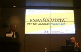 Salle comble pour le colloque Diálogo. Le public est venu nombreux pour suivre les réponses apportées par Fernando Iturribarría, correspondant du journal El Correo à Paris, Pierre Rousselin, directeur adjoint du Figaro, et Frédéric Josué, directeur marketing de Havas Media France. C'est ce dernier qui a eu l'honneur d'ouvrir les débats, avec une analyse "clinique" du traitement de l'actualité espagnole par les médias français. Journaux papier et online, supports télévisuels, Twitter, dépêches AFP... Havas Media a passé au peigne fin un large spectre de supports. On retiendra de cette analyse que l'Espagne partage, à peu de références près, la première position avec l'Allemagne, concernant le nombre de fois où le pays y est évoqué. Au total, 56.463 références, soit 24 % du total des contenus significatifs. Loin devant l'Italie, l'Angleterre, la Belgique ou les Pays-Bas, l'actualité de ce côté-ci des Pyrénées passionne la presse française. Les deux thématiques les plus récurrentes au cours de ces derniers mois ont été la "crise", dans 60% des cas et la "victoire", dans 30% des contenus.