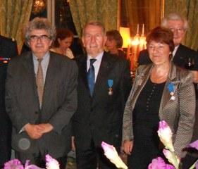 (De gauche à droite : Jean-Claude Nola, Ministre conseiller, Daniel Petitjean, président de l'association, Annie Mari, consule)