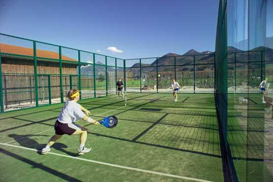 Le pádel se joue sur un terrain mesurant la moitié d'un court de tennis. Celui-ci est fermé et bordé par des parois le plus souvent en plexiglas et sur lesquelles il est permis de faire rebondir la balle. La balle, elle, ne diverge de celle du tennis que par son poids et sa pression. La principal différence se situe au niveau de la raquette qui est très courte, un peu comme celles de plage, et percée de trous. Généralement fabriquée en carbone, elle pèse environ 370 grammes.