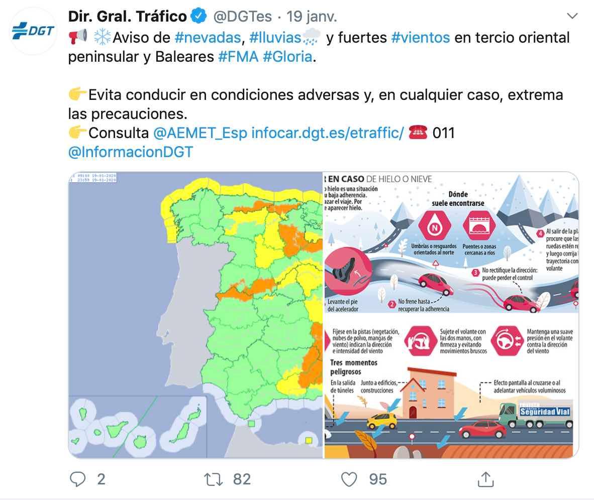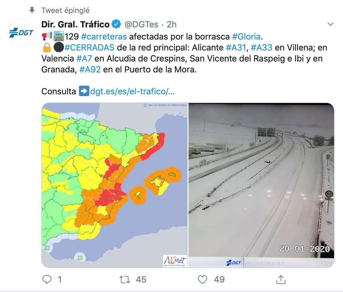 D’après le ministère de la politique territoriale, des travaux publics et de la mobilité, la tempête Gloria a nécessité jusque-là 499 tonnes de sel et 105 000 litres de saumure, en plus d'une flotte de 39 chasse-neiges.