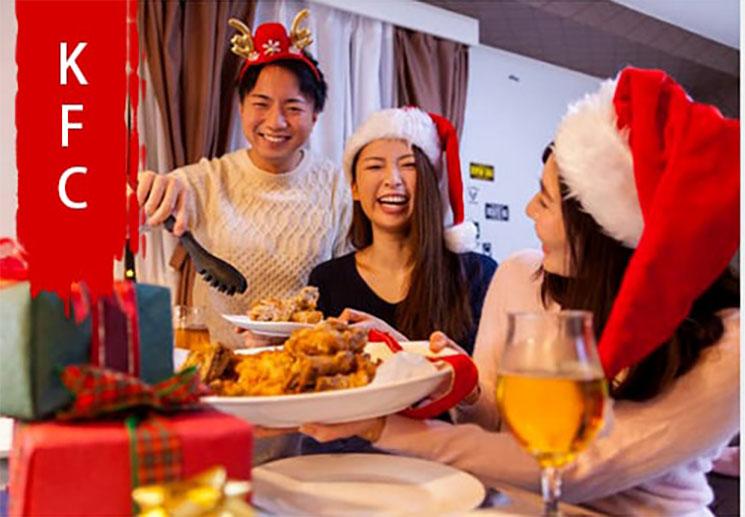 En 1970, l’enseigne KFC, à peine implantée au Japon, s’infiltre dans la brèche et propose un menu spécial Noël remplaçant la dinde par du poulet frit. 4 ans plus tard, la promotion est devenue nationale au Japon sous le nom de Kurisumasu ni wa kentakkii!, qui signifie “Kentucky pour Noël“. La fête de Noël, bien que non célébrée au Japon, est néanmoins connue des japonais très sensible au marketing , qui ont ainsi trouvé dans cette nouvelle tradition, un vide à combler en cette période creuse de l’année.