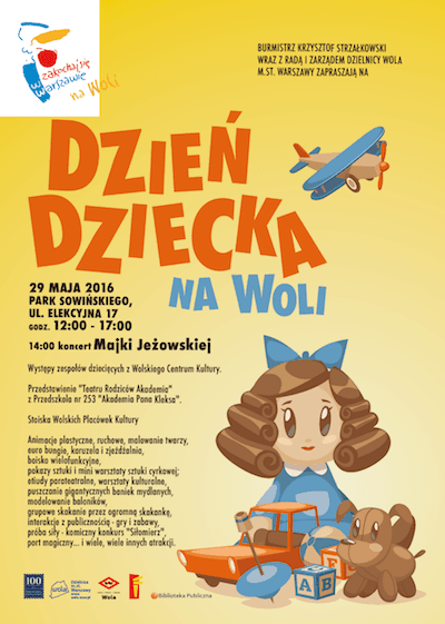 A l'occasion de la journée internationale des enfants, introduite en Pologne en 1952 et célébrée le 1er juin, le district de Wola organise ce dimanche une demi-journée de festivités pour les enfants et leurs parents au parc Sowi?ski. Au programme : des spectacles et numéros présentés par les enfants du Centre culturel de Wola mais aussi un concert à 14h de Majka Je?owska, chanteuse polonaise de pop et compositrice de chansons pour enfants, et de nombreuses animations (ateliers culturels, jeux, stands de peinture, expositions artistiques, petits ateliers sur l'art du cirque, trampolines, manège,?).