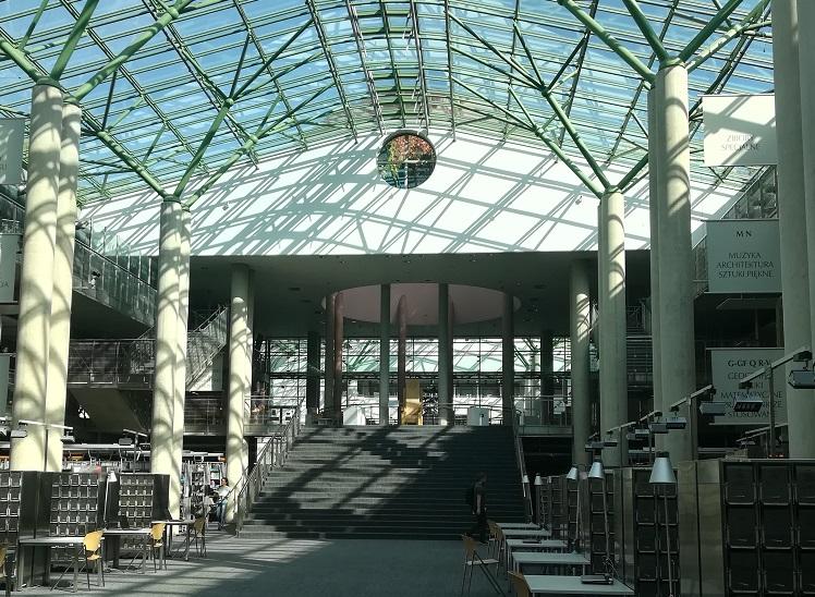 Contrairement à ce que l’on pourrait penser, la Bibliothèque n’est pas seulement accessible aux étudiants, mais à tout habitant de Varsovie qui souhaite devenir adhérent. Elle offre une collection d’ouvrages très riches, sur des supports très variés allant du livre, au magazine, ainsi que des versions Web. C’est un lieu agréable, moderne est très spacieux qui offre les meilleures conditions de travail que l’on puisse espérer. Mais la Bibliothèque de l’Université de Varsovie est aussi un lieu de promenade et de flânerie grâce à son toit qui constitue un grand parc suspendu au-dessus de la ville !
