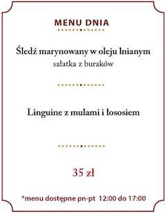 La décoration et la carte sont inspirées de ses voyages à New York et à Paris : partager un dîner ?simple' entre amis ou déjeuner rapidement et pas trop cher (une formule déjeuner à 35zl est disponible tous les jours de semaine). Deux coins avec des grandes banquettes rouges nous rappellent les compartiments de train du début du siècle et permettent à certains de profiter d'un espace calme et un peu plus intime pour savourer leur dîner.