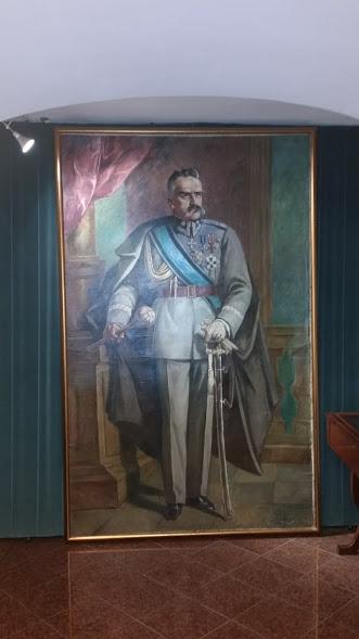 Si l'étage inférieur accueille actuellement une exposition dédiée au maréchal, et s'il y a eu des projets de faire du Belvédère un musée lui étant totalement dédié, c'est bien parce qu'il occupe une place particulière dans l'histoire polonaise. Il est en effet largement crédité de la création de la deuxième république de Pologne en 1918. Evénement très important puisqu'à cette date le pays recouvre son indépendance, ayant été partagé tout au long du XIX siècle entre plusieurs empires. Après avoir été condamné à l'exil en Sibérie pour complot contre le régime tsariste, le maréchal devient le chef du Parti Socialiste polonais et mène une lutte armée pour obtenir l'indépendance du pays. Il devient Président de la République entre 1918 et 1922. Revenu au pouvoir en 1926 à la suite d'un coup d'Etat, il sera successivement Premier ministre de Pologne et ministre des Forces armées. Sa mort en 1935 eut un grand retentissement. Ses obsèques furent à la mesure du statut du personnage : un train funéraire fit le tour de la Pologne et des pièces commémoratives ou encore des timbres furent édités à son effigie.