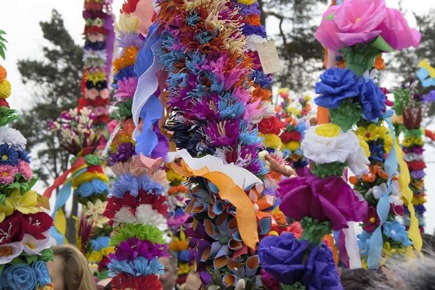 En Pologne, dans certains villages comme celui de ?yse, situé au nord de la Mazovie ou ?owicz, à environ une heure de route à l'Ouest de Varsovie, les habitants et les milliers de visiteurs apportent à l'église d'immenses rameaux colorés qui seront bénis ce dimanche-là avant d'être utilisés lors de la procession religieuse.