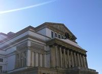 Inauguré en 1833, le Théâtre Wielki, appelé aussi Grand Théâtre, détient la scène la plus grande d'Europe, avec ses 36 mètres de largeur, 50 mètres d'épaisseur et 36 mètres de hauteur. L'amphithéâtre peut accueillir jusqu'à 1828 spectateurs.