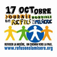 Depuis 1987, la Journée mondiale du refus de la misère est célébrée le 17 octobre. Elle est l'occasion pour le grand public d'entendre la voix des personnes qui vivent dans une grande pauvreté et de s'interroger sur les engagements que tous nous pouvons prendre, comme citoyens, pour refuser la misère. Le message proclamé chaque année est immuable : "Là où des hommes sont condamnés à vivre dans la misère, les Droits de l'Homme sont violés. S'unir pour les faire respecter est un devoir sacré."Les engagements revêtent différentes formes : signer et diffuser la déclaration de solidarité, soutenir et se mobiliser pour contribuer à mettre en ?uvre une des actions proposées pour cette campagne, porter le ruban multicolore qui signifie la volonté de créer des liens entre les personnes qui vivent dans la misère et le reste de la société, aider et soutenir les associations qui se mobilisent pour cette campagne comme ATD Quart Monde.