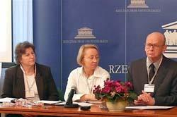 Le Dr Janusz Kochanowski et Mme Anna Sleźnik présentent le programme d'action de la journée lors d'une conférence de presse
