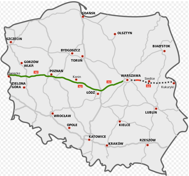 Mieux ! Dans la nuit de mercredi à jeudi l'autoroute A2 reliant Varsovie à Berlin a finalement été ouverte. La construction du dernier tronçon entre Lodz et la capitale polonaise avait pris du retard à cause de l'abandon du chantier en 2011 par le chinois COVEC. Les 50 derniers kilomètres ont finalement été réalisés par le français Eurovia et le tchèque Bogl a Krysl.