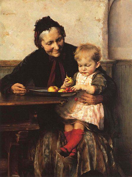 (Babcia z wnuczka, Grand-mère et sa petite fille, Aleksander Mroczkowski)