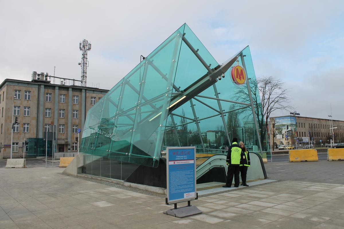 Il ajoute également que les sorties de la ligne 2 ne souffrent pas seulement sur le plan esthétique mais surtout en ce qui concerne le choix de leur emplacement : « Si l'on s'attarde sur les sorties de métro en forme de M, il y a clairement un problème d'échelle. Par exemple, sur ?wi?tokrzyska, il y a plusieurs sorties qui sont très proches, alors qu'il est possible de traverser simplement la rue. Contrairement à un axe plus dense comme Targowa à Praga (arrêt Dworzec Wile?ski) où les proportions sont respectées et les passages sous terrains du métro sont vraiment utiles ».