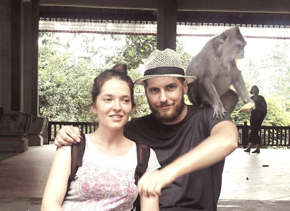 J'aurais aimé prendre une photo de ma bague de fiançailles? Mais comme je n'en ai pas, j'ai décidé de vous montrer une photo de singe. Cette photo a été prise à Bali l'été dernier. Ces vacances sont symboliques parce que c'était la première fois qu'on passait un long moment ensemble, notre premier grand voyage.