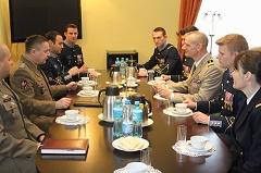 L'Attaché de Défense de l'Ambassade de France en Pologne, le colonel Roland Delawarde, s'est rendu à Wroc?aw le 4 février 2015 pour une visite de l'Ecole militaire supérieure des Forces terrestres (WSOWL).