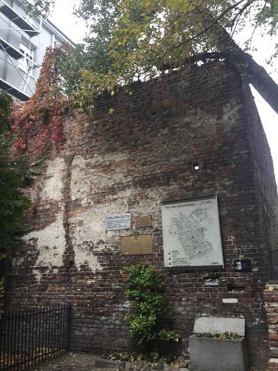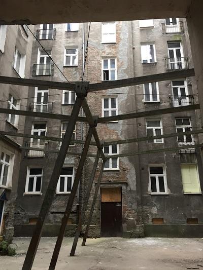 7: Restes de la passerelle qui reliait le petit et le grand ghetto. Le ghetto était séparé par la rue Chlodna, qui était une artère importante de transport et ne pouvait donc pas être intégrée au ghetto. Cette passerelle était le seul moyen pour les Juifs d'observer la vie en dehors du ghetto. Celle-ci n'a été créé qu'en 1941.